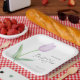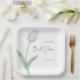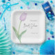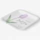 Die eleganten Brautparty-Teller mit einem Single, einem lila und schlauen grünen Tulpenstamm und einer schlichten und zugleich modernen Eleganz, perfekt für eine lässige Hochzeit oder eine Gartenfeier. Erstellt von der einfachen Farmhouse Press.