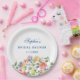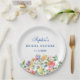 Personalisieren Sie diese feminine, helle Brautparty-Papierplatte mit Ihrem Namen, und fügen Sie eine helle, elegante Touch zu Ihrem Brautparty Party oder Brautparty Picnic. Set gegen einen knalligen, weißen Hintergrund, die Rose Blush Pink, Lilac, Yellow und Peach geben einen modernen Chic Look für Ihre Brautparty-Tischeinstellungen.