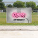 Öffnen Sie das rosa Neonzeichen. Persönlich anpassen, indem Sie Ihr Logo hochladen und bei Bedarf für Geschäftsnachrichten und Hintergrund wechseln.