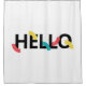 Modernes, buntes, urbanes, cooles, kreatives Grafikdesign eines Wortes "Hallo". Verspielte, lustige, trendige geometrische Formen mit urbaner Typografie in Gelb, Rot, Blau und Schwarz.
