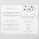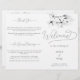 Ein Teil der Magnolien, handgezeichnet in schwarzem Graphitstift, schmückt dieses elegante, einfache, elegante und moderne, faltbare Hochzeitsprogramm. Es zeichnet sich durch moderne, elegante Skriptkalligraphie mit großem Schnörkel aus. Luxuriös aber einfach, klassisch, aber elegant, modern, aber zeitlos. Eine schöne Wahl für eine Frühlings- oder Sommerhochzeit mit Magnolien im Brautbukett oder als Akzente.
