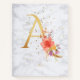 Modernes Marmorwasser Goldenes Monogramm Letter A Notizbuch