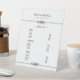 Modernes Menü mit Blumensignatur Weißer Salon Sockelschild