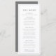 Moderne, sehr einfache Grafik dunkelgrau und weiß Ereignis große vertikale Menüs. Ideal für ein einfaches, minimales oder modernes Hochzeitsfest oder ein formelles Corporate Event Dinner. Bearbeiten Sie die Datei mit Ihren eigenen Menü-Details. Weitere passende Elemente verfügbar. Entworfen von www.mylittleedenweddings.com