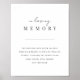 Das einfache und schicke Schild eignet sich hervorragend, um an Ihrem Gedenktisch für Hochzeiten Platz zu nehmen oder um Liebende zu ehren, die verstorben sind. Personalisieren Sie den Kopf- und Text-Text (mit "In Loving Memory" und einem kurzen Gedicht) in weichem schwarz handgeschriebenem Skript und klassischem Blocksatz.