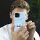 Ein minimalistisches Monogramm-Design mit großen Schriftzeichen in einem klassischen Schriftart mit Ihrem Namen darüber. Mit einem blauen Hintergrund und minimalistischen Monogramm personalisierten Namensbriefen ist dies die perfekte moderne und dennoch einfache Handydose zum Fasteln, sogar ideal zum Genken.