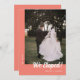 Moderne Minimal Coral Pink Hochzeitsankündigung. Passen Sie Ihre Namen, das Hochzeitstag und eines Ihrer Lieblings-Fotos auf der Vorderseite der Karte an, und fügen Sie Ihre individuelle Nachricht für Familie und Freunde auf der Rückseite. Bitte benachrichtigen Sie den Designer, wenn Sie Hilfe bei Änderungen benötigen.