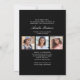 Saubere, trendige, moderne und elegante "4-Foto"-Abschluss-Ansichtskarten mit Designelementen moderner Texte mit einem einzigartigen Kalligraphie-Tintenskript. Die Fotos des Absolventen werden mit einem feinen und minimalistischen Gradientenband betont. Auf der Kartenrückseite finden Sie personalisierte Textstellen für Informationen über Ihren Abschluss. Schwarz & Weiß oder einfach den Hintergrund anpassen, um der Grundfarbe Ihrer Schule oder einer beliebigen Farbe Ihrer Wahl zu entsprechen. Perfekt für die Gymnasialstufe, die Uni und den Hochschulstudiengang.