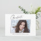 Saubere, trendige, moderne und elegante "3-Foto"-Abschluss-Ansichtskarten mit Designelementen moderner Texte mit einem einzigartigen Kalligraphie-Tintenskript. Die Fotos des Absolventen werden mit einem feinen und minimalistischen Gradientenband betont. Die Kartenrückseite bietet personalisierte Textstellen für Informationen über Ihren Abschluss oder können gelöscht werden, wenn Sie eine Nachricht übergeben möchten. Schwarz & Weiß oder einfach den Hintergrund anpassen, um der Grundfarbe Ihrer Schule oder einer beliebigen Farbe Ihrer Wahl zu entsprechen. Perfekt für die Gymnasialstufe, die Uni und den Hochschulstudiengang.