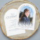Diese einfache minimalistische, blau-weiße Abschluss-Karte dient sowohl als Ankündigung des Abschlusses als auch als Party Einladung des Grades und verfügt über ein Foto, einen Bogenrahmen und eine elegante moderne Typografie.