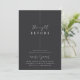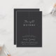 Die Probe des Hauses ist ein idealer Ausgangspunkt für Ausflüge in die Umgebung. Einfach minimales Design in einer Kombination aus weißem handgeschriebenem Skript und klassischer Serifenschrift, unten auf einem schwarzen Hintergrund mit weichem Asche und dezenten vertikalen Linien-Details. Entworfen, um unsere Inline Hochzeitskollektion zu ergänzen.