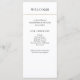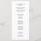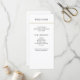 Dieses moderne und elegante Hochzeitsprogramm besticht durch schwarzen Text auf weißem Hintergrund, wobei oben ein goldener Streifen aus Imitat zu sehen ist.