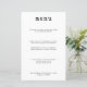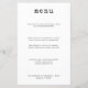 Dieses minimale Menü mit Schreibmaschinen-Schriftart ist perfekt für eine moderne Hochzeit, Minimalhochzeit oder jede andere Feier. Diese Menüvorlage zeichnet sich durch ein schlankes, sauberes und elegantes Design aus. Alle Textelemente und Farben dieser Hochzeitsmenükarte können individuell angepasst werden.