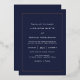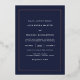 Diese modernen und eleganten Einladungen sind mit weißem Text auf dunklem, dunkelblauen Hintergrund mit einer goldenen Rose-Folie versehen.