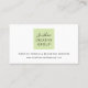 Diese moderne Visitenkarte zeichnet sich durch ein minimales, helles, federgrünes Hintergrunddesign mit schwarzem Stiltyp aus, das sich vor und zurück vollkommen personalisiert gestalten lässt. Set für ein Büro oder ein Unternehmen auf Zuhause-Basis, auch wenn Texte auf Ihre Bedürfnisse zugeschnitten werden können. Bitte kontaktieren Sie den Designer, um Unterstützung beim Design zu erhalten.