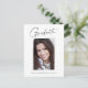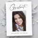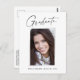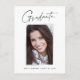 Saubere, trendige, moderne und elegante "Foto"-Abschluss-Ansichtskarten mit Designelementen moderner Texte mit einem einzigartigen Kalligraphie-Tintenskript. Das Foto des Absolventen auf der Vorderseite der Karte wird mit einem feinen & minimalistischen Gradientenband betont. Die Kartenrückseite bietet personalisierte Textstellen für Informationen über Ihren Abschluss oder können gelöscht werden, wenn Sie eine Nachricht übergeben möchten. Schwarz & Weiß oder einfach den Hintergrund anpassen, um der Grundfarbe Ihrer Schule oder einer beliebigen Farbe Ihrer Wahl zu entsprechen. Perfekt für die Gymnasialstufe, die Uni und den Hochschulstudiengang.