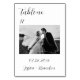 Elegante, minimale, schwarz-weiße Hochzeitskarten für Foto-Tischnummer. Sie können es mit Ihren Daten personalisieren.
