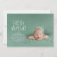 Hallo Welt Hand geschrieben moderne minimale Foto Geburtsankündigung. Moderne grafische Marker Stift Typografie Design. Die Farbe des grünen Hintergrunds kann geändert werden.