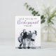 Eine Hochzeit zu planen ist eine aufregende Zeit für jeden, wichtige Entscheidungen zu treffen, wie z.B. wer Ihre Brautjungfrau sein wird, ist nur eine davon. Diese stilistischen, minimalen Karten sind eine großartige Möglichkeit, sie fragen und geben ihnen ein Foto, das für immer Schatz bewahrt. Die Karte zeigt Ihr Lieblingsbild von Ihnen und sie, der Text lautet "WERDEN SIE MY BRIDESMAID" mit und ist mit ihrem Namen personalisiert. Die Textstile, -größen und -farben können durch einen Klick auf den entsprechenden Schriftart nach der Personalisierung geändert werden.