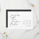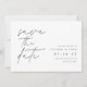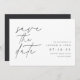 Einfache und elegante Hochzeit speichern die Daten für moderne, minimalistische Paare "Save the Date" in handgeschriebenen Schriftzeichen, die an den links ausgerichtet sind. Ihre Hochzeitsdetails erscheinen rechts in klassischer Schrift. Benutzen Sie den Rücken, um zusätzliche Informationen mit Ihren Gästen zu teilen.