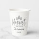 Merriest Weihnachten rustikale Typografie Urlaub Papier Tassen. Mit modernem handgezeichneten Text und Bäumen. Farbe kann angepasst werden.