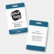Dieses elegante Abzeichen ist perfekt für jedes Unternehmen, das seinen Mitarbeitern ein individuelles Aussehen mit maßgeschneiderten Texten und Farben geben möchte. Das Design zeichnet sich durch einen aquamarinen, blauen, schwarzen und weißen Hintergrund aus, der sich auch leicht anpassen lässt!