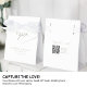 Moderner, minimaler, handschriftlicher Schriftart, weiß, mit Ihrem Namen, Datum & QR Code Foto Sharing Gevor Box. Editieren Sie Ihr Produkt in wenigen Minuten. Feiern Sie Ihre Liebe mit unseren maßgeschneiderten Gefälligkeitsboxen.