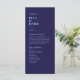 Dieses moderne Hochzeitsprogramm präsentiert ein schlankes, minimalistisches Design in marineblau und sanft blau, ergänzt durch eine auffallende Typografie. Personalisieren Sie es mit den Namen des Paares, Zeremonie Details, einem herzlichen Dankeschön-Hinweis, und den wichtigsten Veranstaltungsinformationen wie Datum und Veranstaltungsort. Entdecken Sie alternative Farbpaletten und Bearbeitungsfunktionen, indem Sie unter "Anpassen" auf "Bearbeiten mit dem Entwurfswerkzeug" klicken. Bei Fragen zögern Sie nicht, mit der Message-Taste zu gelangen. Teil einer schön koordinierten Sammlung.