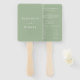 Mit diesem Handfan für das moderne Minimalistische Heiratsantrag stärken Sie Ihre Hochzeitsfeier. Der elegante Handventilator besticht durch einen sanften, grünen Hintergrund und eine raffinierte Typografie. Freuen Sie sich auf ein stilvolles Programm und ein praktisches Accessoire für Ihre Gäste. Die raffinierte Mischung aus Serif- und Skript-Schriftart schafft eine zeitlose, aber zeitlose Ästhetik, perfekt für Hochzeiten im Freien, im Garten oder im Sommer. Dieser Ventilator ist vollständig anpassbar und ermöglicht es Ihnen, Einzelheiten zur Zeremonie, die Namen der Hochzeitsfeier und besondere Notizen für eine personalisierte Touch einzubinden.