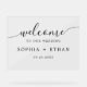 Modernes Script Acryl Hochzeitszeichen mit schwarzer Schrift.