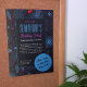 Eine subtile Linie Blumendruck auf Geburtstagseinladung. Verwenden Sie "Diese Vorlage personalisieren", um Ihre Ereignisdetails hinzuzufügen. Mit modernen geometrischen Varianten von Blume wie japanische Anemonen, Daffodien, Veilchen, Stiefmütterchen, Gänseblümchen, Rose, Michaelmas Daisies, Cinquefoils, Primaten, Buddleia, Clematis, Gardenia, Phlox und vergessene Noten. Der Druck ist hellblau und zeigt lila Linien auf dunkelblauem Hintergrund.