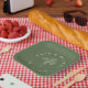 Die moderne und minimale Papierplatte in Grün und Weiß zeichnet sich durch einen weißen, anpassbaren gebogenen Text mit einem einfachen botanischen Stiel in der Mitte aus.