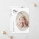 Unsere minimalistische Geburtsankündigung zeigt ein ovales Foto und moderne Typografie. Personalisieren Sie diese moderne Babyankündigung, indem Sie Ihr Foto, Ihre Nachricht, Ihre Geburtsdaten und andere Details hinzufügen. Fotos von Prostooleh / Freepik.