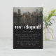Moderne minimalistische Foto Black Wedding Elopement Ankündigung. Personalisieren Sie diese schlichte und elegante Hochzeitskarte mit einem beliebten Foto, Ihren Namen und Ihrer Begrüßungsbotschaft für Freunde und Familie.