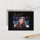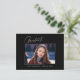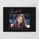 Saubere, trendige, moderne und elegante "Foto"-Abschluss-Ansichtskarten mit Designelementen moderner Texte mit einem einzigartigen Kalligraphie-Tintenskript. Das Foto des Absolventen auf der Vorderseite der Karte wird mit einem feinen & minimalistischen Gradientenband betont. Die Kartenrückseite bietet personalisierte Textstellen für Informationen über Ihren Abschluss oder können gelöscht werden, wenn Sie eine Nachricht übergeben möchten. Schwarz & Weiß oder einfach den Hintergrund anpassen, um der Grundfarbe Ihrer Schule oder einer beliebigen Farbe Ihrer Wahl zu entsprechen. Perfekt für die Gymnasialstufe, die Uni und den Hochschulstudiengang.
