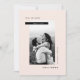 Ein schlichter Rahmen der schlichten Muschel pink fühlt sich modern und minimalistisch an, um Ihr Foto der Portrait-Verlobung neben einfachem Text. Personalisieren Sie diese Karte mit weiteren Informationen mithilfe der benutzerdefinierten Textfelder auf der Rückseite.