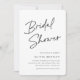 Erleben Sie die Braut mit den modernen und minimalen Brautduscheinladungen in Schwarz und Weiß. Einfache Design-Features "Brautparty" in lässiger, handgeschriebener Schrift, mit Ihren Veranstaltungsdetails in modernen Soft Asche schwarz Schrift.