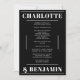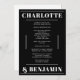 Dieses moderne und kühne Hochzeitsprogramm verbindet minimalistisches Design mit einer eleganten Schwarz-Weiß-Palette und bietet eine raffinierte Touch zu Ihren Zeremoniell-Details. Dieses Programm mit weißer Typografie auf einem reichen schwarzen Hintergrund ist sowohl stilvoll als auch funktional. Ideal für zeitgenössische Hochzeiten, sorgt es dafür, dass Ihre Gäste mit Leichtigkeit folgen und dabei Ihr elegantes Hochzeitstil ergänzen können. Das Design ist das perfekte Gleichgewicht zwischen Einfachheit und Kühnheit und macht es zu einer herausragenden Wahl für Ihren großen Tag.