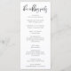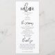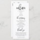 Modernes, minimalistisches Hochzeitsprogramm mit boho script Schriftart. Alle Informationen über die Hochzeitsfeier und den Namen der Hochzeitsfeier auf diesem Programm aufgeführt.