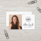 Moderne minimalistische Logo-Foto-Visitenkarte mit einem Signaturskripttyp für Ihren Namen und in Ihrer Auswahl aller Farben mit Ihrem QR-Code und Icons für Telefon, E-Mail, Social Media-Benutzernamen für FaceBook und Instagram, Website und Adresse, die Sie löschen oder hinzufügen können und sich bewegen, wie gewünscht. ÄNDERUNGEN: Ändern Sie den Stil, die Farbe, die Größe und die Platzierung eines Schriftartes, ändern Sie Hintergrund- oder Symbolfarben oder löschen/verschieben Sie die Kontaktsymbole in EDIT. HILFE: Für Hilfe bei der Modifikation oder Personalisierung von Designs oder wenn Sie Gegenstände koordinieren möchten, kontaktieren Sie den Designer BEVOR er Bestellung über die Registerkarte Zazzle Chat MESSAGE oder per E-Mail makeitaboutyoustore@gmail.com.
