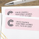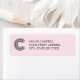 Modernes, modernes Label mit individuellem geometrischen Initial und serifenloser Name/Adresse. Lettern ist ein dunkles Schießmetall-Grau.
