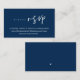 Dies ist die moderne schöne Minimalistische, RSVP-Karte, in einfachen modernen Minimalistischen, Navy Blue Script, Online UAWG script, für Ihre Hochzeit Einladung reagieren, oder Party feiern Gehäuse Karte. Sie können die Schriftart-Farben ändern und Ihre Hochzeitswebsite-Details mit dem Zazzle-Textbearbeitungstool hinzufügen. #TeeshaDerrick
