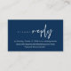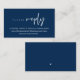 Das ist die moderne, wunderschöne Minimalistische RSVP-Karte, in einfachem Navy-Script, für Ihre Hochzeitsfeier Einladung reagieren, oder Party feiern Gehäuse Karte. Sie können die Schriftart-Farben ändern und Ihre Hochzeitswebsite-Details mit dem Zazzle-Textbearbeitungstool hinzufügen. #TeeshaDerrick