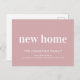 Eine bewegende Postkarte mit einem modernen und minimalistischen Schriftzeichen-Sprichwort "new Zuhause" in pastellrosa Farbhintergrund. Sie können die Details personalisieren.