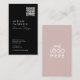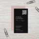 Elegante, moderne Visitenkarte mit Logo und QR-Code, die in gedämpften Pastellfarben neben Ihren Kontaktinformationen sichtbar dargestellt wird. Dazu gehört auch das Social Media Handle in einem stilvollen Skript und zeitloses Typografie-Design. Das ist die schwarze und die schwarze Version.