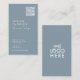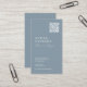 Elegante, moderne Visitenkarte mit Logo und QR-Code, die in gedämpften Pastellfarben neben Ihren Kontaktinformationen sichtbar dargestellt wird. Dazu gehört auch das Social Media Handle in einem stilvollen Skript und zeitloses Typografie-Design. Das ist die staubblaue Version.