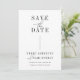 Dieses moderne minimalistische Save the Date besticht durch eine kühn-elegante Schriftart-Paarung. Bearbeiten Sie alle Formulierungen und alle Schriftart- und Hintergrundfarben. // Für passende Artikel besuchen Sie bitte die "ASPEN" Kollektion im Sincerely By Nicole Zazzle Store. * Wenn Ihnen dieses Design gefällt, Sie es aber nicht für etwas finden, das Sie suchen, wenden Sie sich bitte jederzeit an mich:)