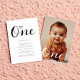 Dieses moderne First Birthday Foto Invitation besticht durch ein elegantes Design, das sich perfekt eignet, um den Meilenstein Ihres Kindes zu feiern. Das fett schwarze Skript fügt eine Touch von Raffinesse hinzu, während das saubere Layout es einfach und stilvoll behalte. Die Einladung beinhaltet ein Foto in voller Größe, mit dem Sie die Persönlichkeit Ihrer Kleinen zeigen können. Es ist eine ideale Wahl für diejenigen, die minimalistische und zeitgenössische Designs Liebe haben und so einen bleibenden Eindruck für den ersten Geburtstag Ihres Babys hinterlassen.
