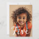 Feiern Sie stilvoll mit diesem minimalistischen 5. Geburtstag Foto. Mit einem schlichten schwarzen Skript auf einem sauberen, einfachen Layout, ermöglicht diese Einladung, ein vollformatiges Foto des Geburtstagskindes zu präsentieren, das es persönlich und unvergesslich macht. Ideal für diejenigen, die eine einfache, moderne und minimalistische Ästhetik für die 5. Geburtstagsfeier ihres Kindes bevorzugen.