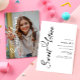 Feiern Sie Ihre Sweet 16 stilvoll mit diesem modernen minimalistischen Einladungs-Design. Die Vorderseite weist individuell anpassbare Details in einem eleganten Skript auf, mit dem Text 'Sweet 6teen' schön gepaart mit einem Herzmotiv. Die Rückseite bietet einen großen Foto, der sich perfekt für eine persönliche Touch eignet. Dieses stilvolle und vielseitige Design eignet sich ideal für jede Feier zum 16. Geburtstag und verbindet Einfachheit mit Charme und schafft so einen bleibenden Eindruck.